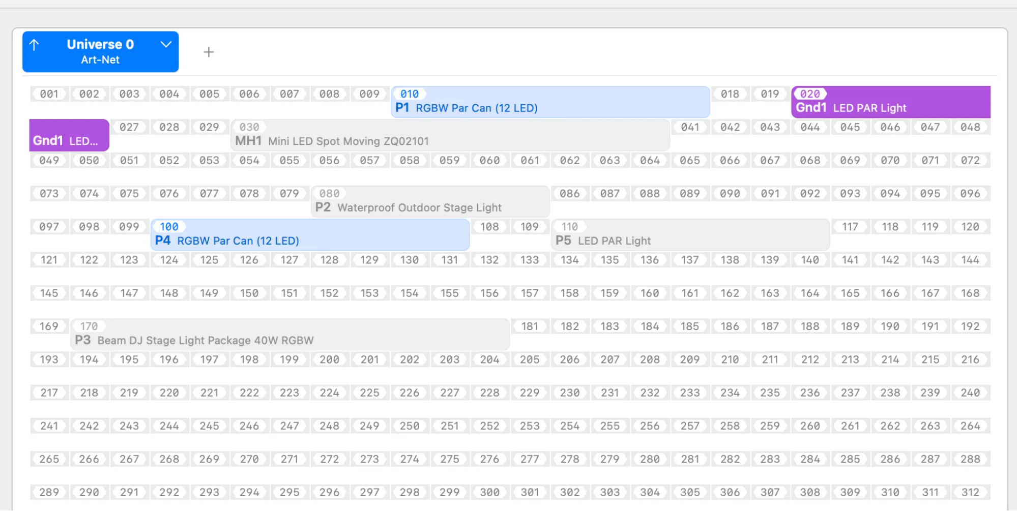 Leave Gaps: Consider leaving a few spare channels between fixture groups to allow for future additions or adjustments without readdressing everything.