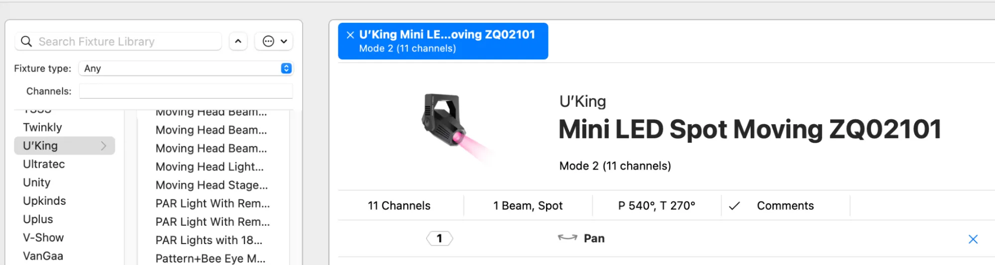 Section titled “U’King Mini Spot Moving Head (Built In)”
